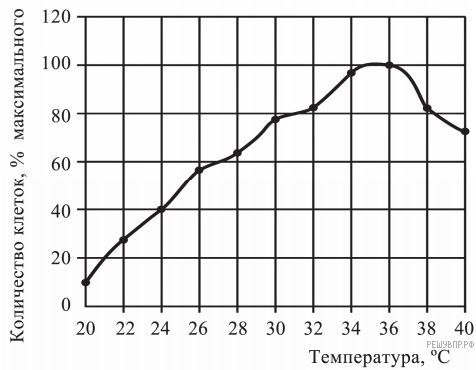 Определите, какое количество бактерий (в процентах от максимального) развилось при 24 градусах.