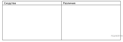 Правильный ответ должен содержать следующие характеристики в каждом из столбоцов:
