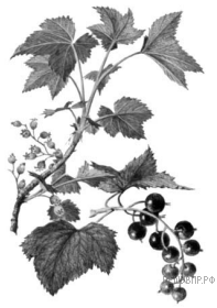 Рассмотрите изображение побега чёрной смородины и опишите его по следующему плану: жизненная форма, тип соцветия, листорасположение.