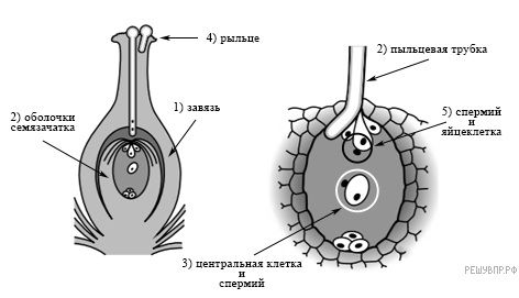 Из каких структур цветка, обозначенных на рисунке «Часть цветка» цифрами 1–5, развиваются части, обозначенные на рисунке «Плод» буквами А и Б?