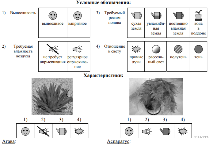 Опишите особенности растений каланхоэ и аспарагуса, которые необходимо учитывать при их разведении в домашних условиях, используя для этого таблицу условных обозначений.