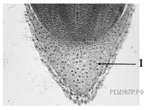 Артём рассмотрел под микроскопом кончик корешка лука и сделал микрофотографию (рис. 2). Что он обозначил на фотографии цифрой 1?
