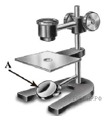 Рассмотрите изображение штативной лупы. Что обозначено на рисунке буквой А?