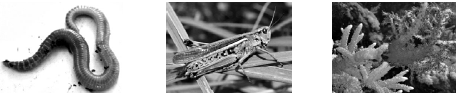 Рассмотрите изображения животных: саранча, дождевой червь, коралловый полип.