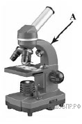 Алексей на уроке изучал устройство микроскопа и делал соответствующие подписи к рисунку. Какую деталь микроскопа на рисунке он обозначил буквой А?
