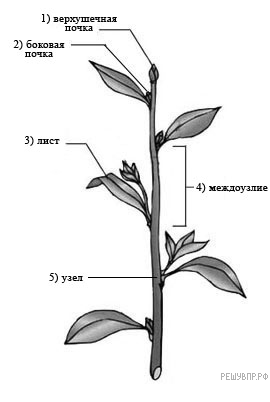 Подпишите названия частей стебля.