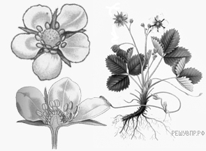 Опишите органы растения Земляника зелёная. Составьте описание цветка, используя характеристики из приведённых ниже списков.