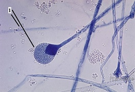 Алексей рассмотрел препарат плесневого гриба мукора под микроскопом и сделал фотографию (рис. 2). Что отмечено на фотографии под цифрой 1?