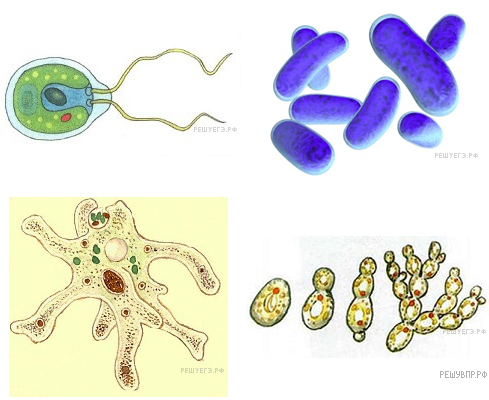 Подпишите их названия, используя слова из предложенного списка: бактерии, грибы, растения, животные.