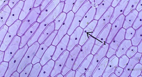 Катя рассмотрела препарат кожицы лука под микроскопом и сделала фотографию. Что отмечено на фотографии под цифрой 1?