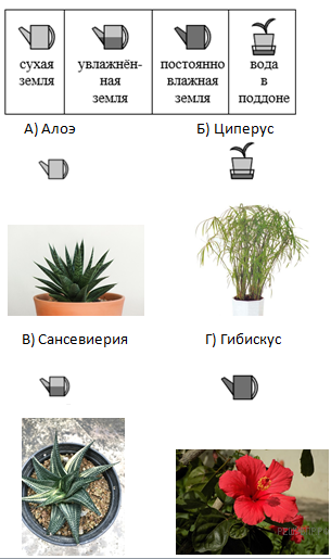 Растения по-разному относятся к степени увлажненности почвы, в которой они произрастают. Расставьте растения по порядку в соответствии с режимом влажности почвы, необходимым для каждого из них, начиная с наименее влаголюбивых.