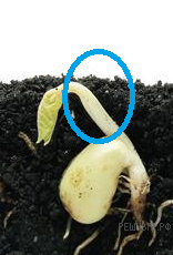 Кристина рассмотрела под лупой прорастающий зародыш фасоли. Что обведено на рисунке синим овалом?