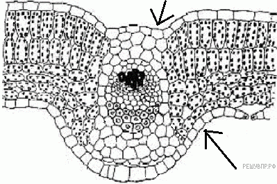 Нина рассмотрела препарат поперечного среза листа и сделала рисунок. Как называется слой клеток, отмеченный стрелками?