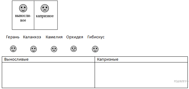 Растения обладают разной выносливостью. Распределите растения по двум столбцам таблицы в зависимости от их выносливости.