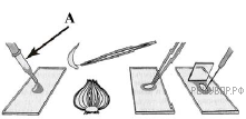 Рассмотрите рисунок с изображением последовательности приготовления препарата кожицы чешуи лука. Что обозначено на рисунке буквой А?